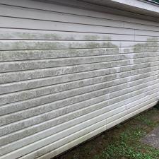 Soft washed home using low pressure to apply algaecide then rinse. Then soft washed the entire roof applying sodium hypochlorite effectively killing all organic growth.