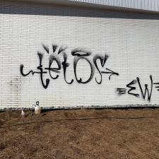 We received a priority graffiti removal request from a newly built ballet school in midtown. We used our proprietary graffiti remover followed by pressure washing the area.
